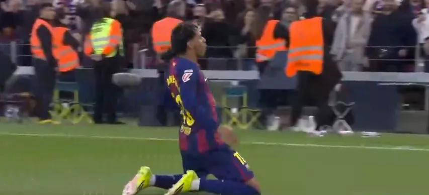 比赛中,在上半场补时阶段,亚马尔错失一次极佳的破门机会。当时拉什福德主罚任意球被对方门将单手扑出,孔德趁机横传,小禁区内无人防守的亚马尔却将空门射偏。第61分钟关键时刻,队友奥尔莫送出妙传,亚马尔禁区弧外果断左脚爆射破门,将比分改写为2比0。